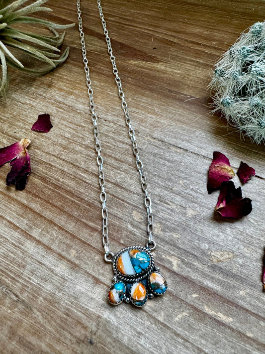 Cluster Necklace Spiny Turquoise & Sterling Silver
