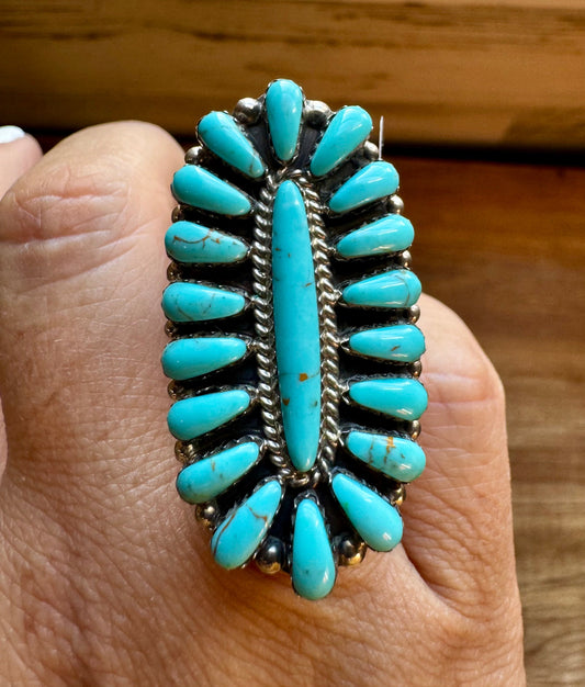 Cluster Ring - size 6 - kingman turquoise and sterling silver