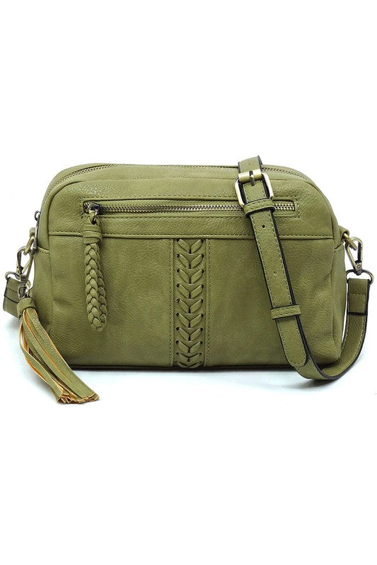 Fashion Whipstitch Tassel Crossbody Bag
