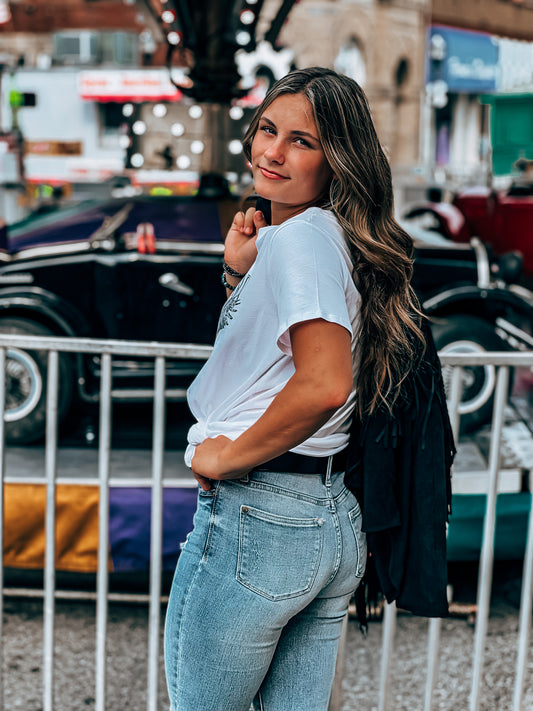 Just a Casual Girly V-Neck Basic Tee in Periwinkle Blue