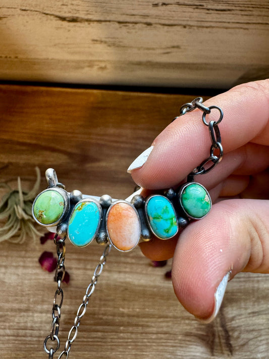 Mix Stones turquoise and spiny bar necklace