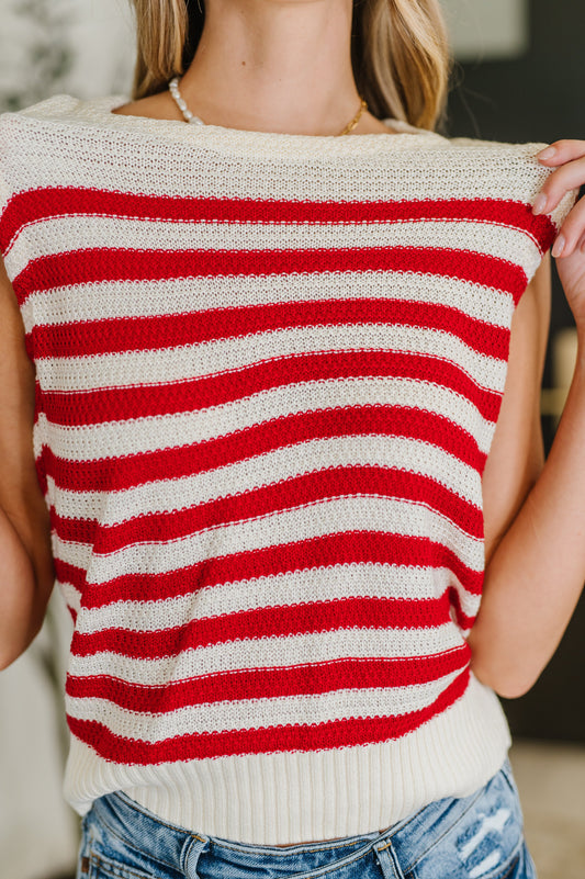 PREORDER: Textured Knit Tank in Red and White Stripe