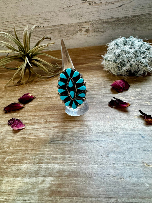 Ring size 7 & 8- long kingman turquoise and sterling silver