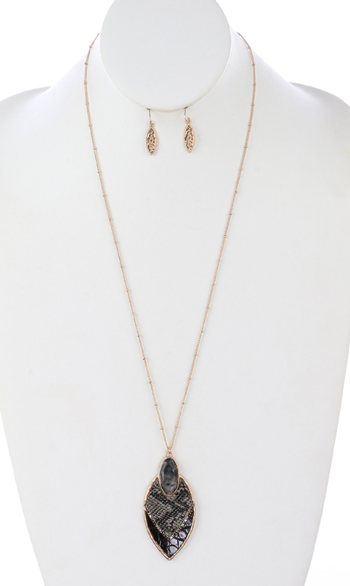 Animal Print Leather Necklace and Earring Set 32" Long