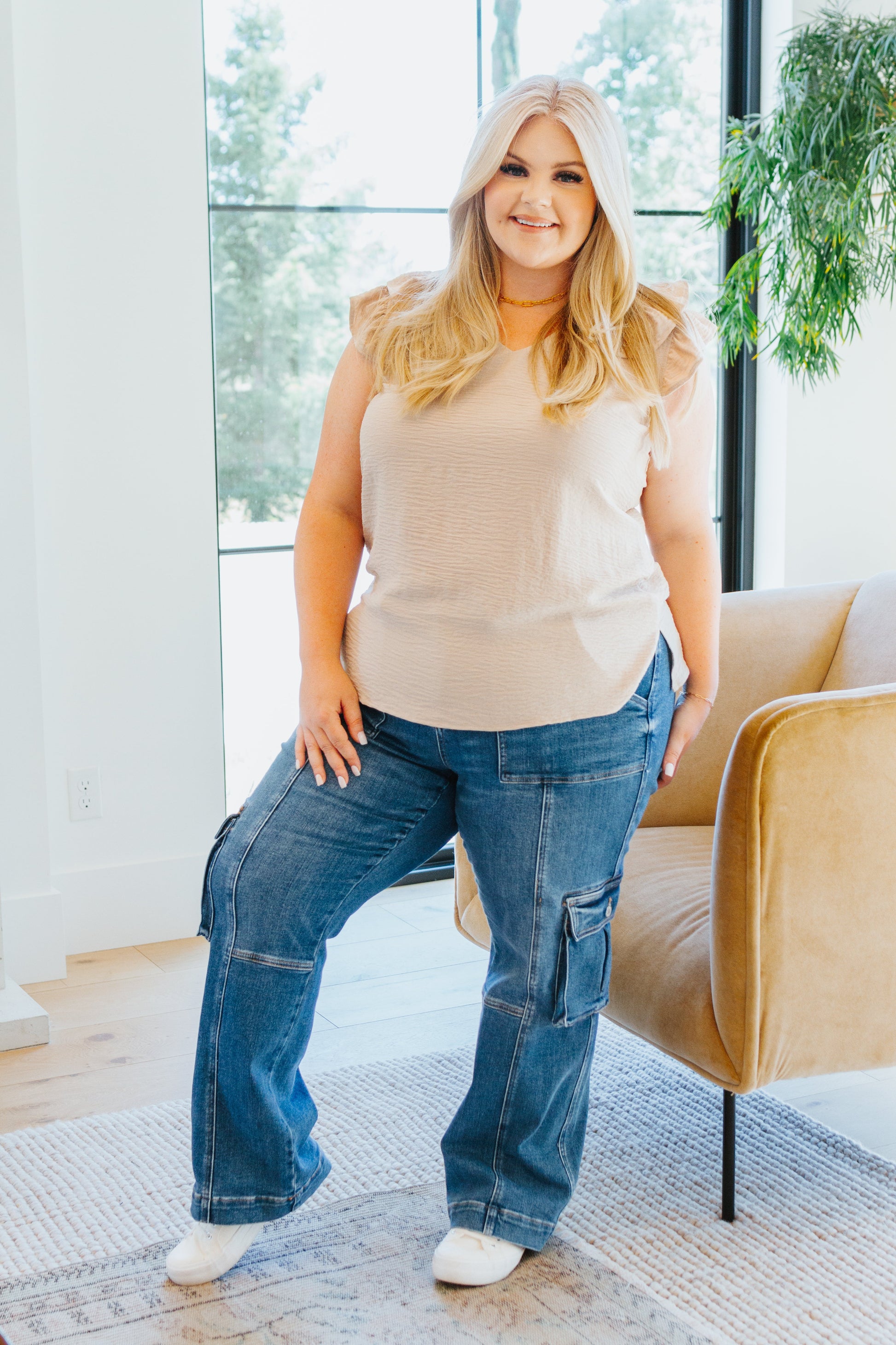 Add the perfect touch of style and refinement to your wardrobe with the Change of Tune Ruffle Tank! This timeless V-neck blouse features double ruffle sleeve detail and textured woven fabric to give you an effortlessly classy look. Make a statement with this timeless trend!