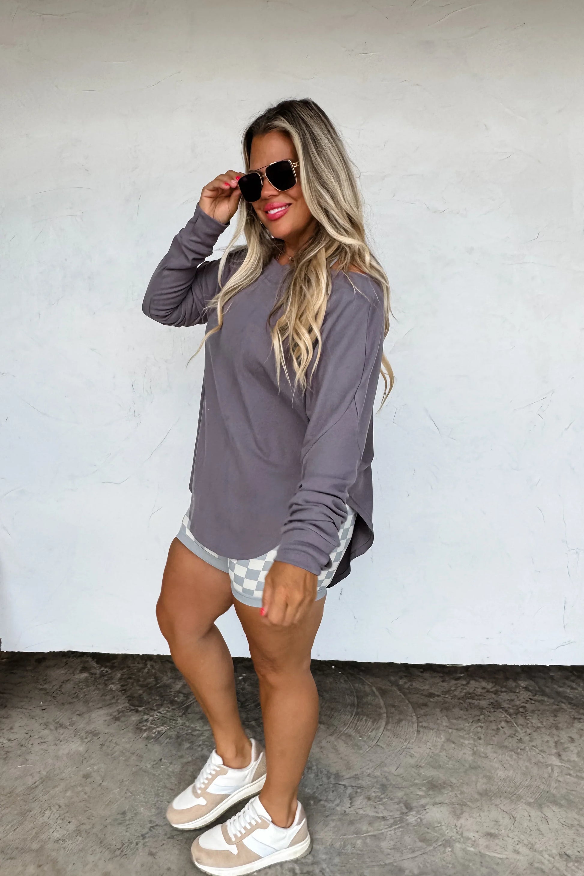 We spared no attention to detail in this SUPER soft sweatshirt! Light weight and so so stretchy. You wont find anything softer than this fabric! Features thumbholes, a boat neck to wear on or off the shoulder and the most flattering high/low hemline!